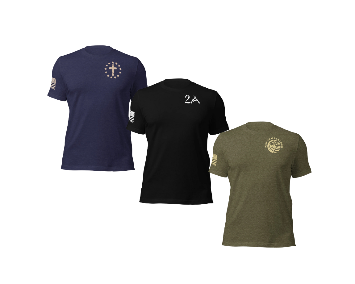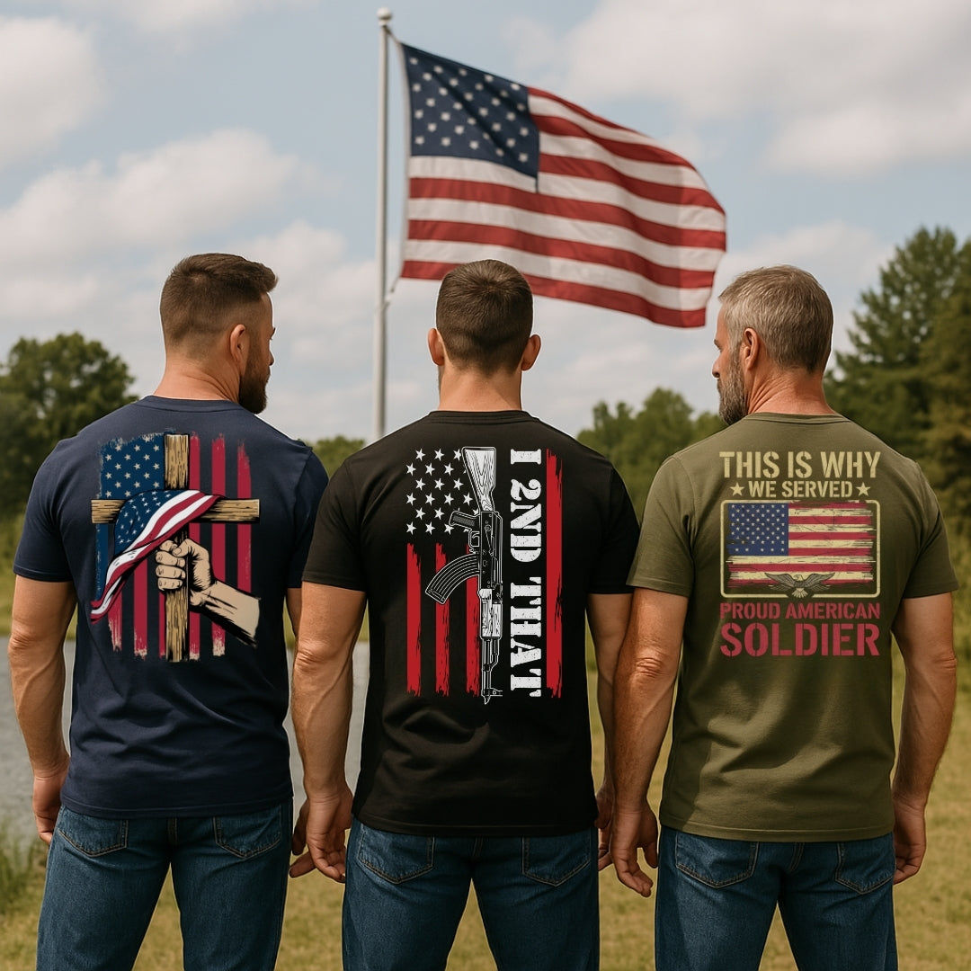 Gear up with the ultimate set of patriotic tees that represent everything you stand for—strength, faith, and loyalty. This bundle includes three badass designs, each celebrating American pride, the Second Amendment, and the warrior spirit.