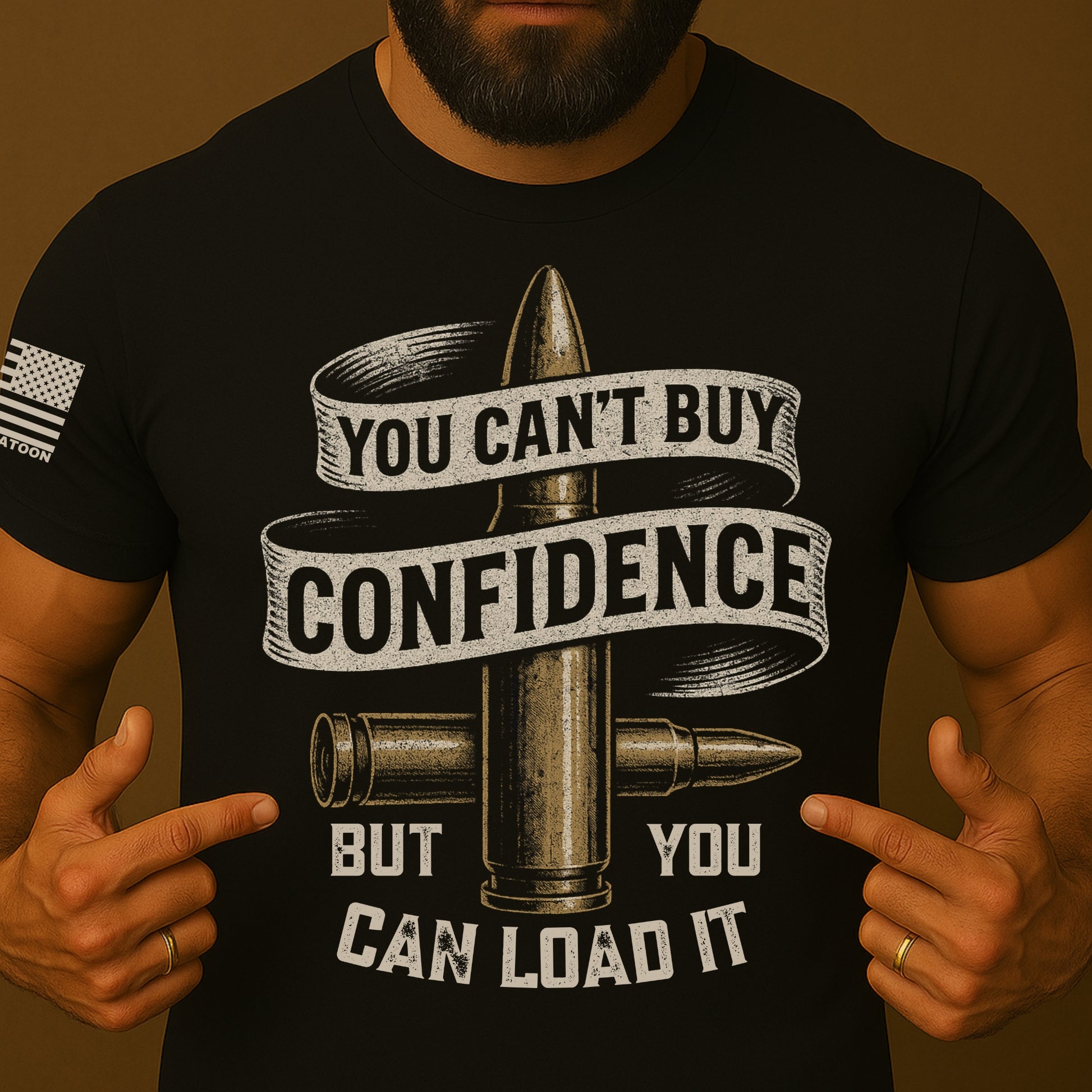 If you know, you know. Real confidence doesn’t come from books or speeches—it comes from the sound of a mag locking in place. Our “You Can’t Buy Confidence But You Can Load It” shirt is for the unapologetic American who’s always ready.